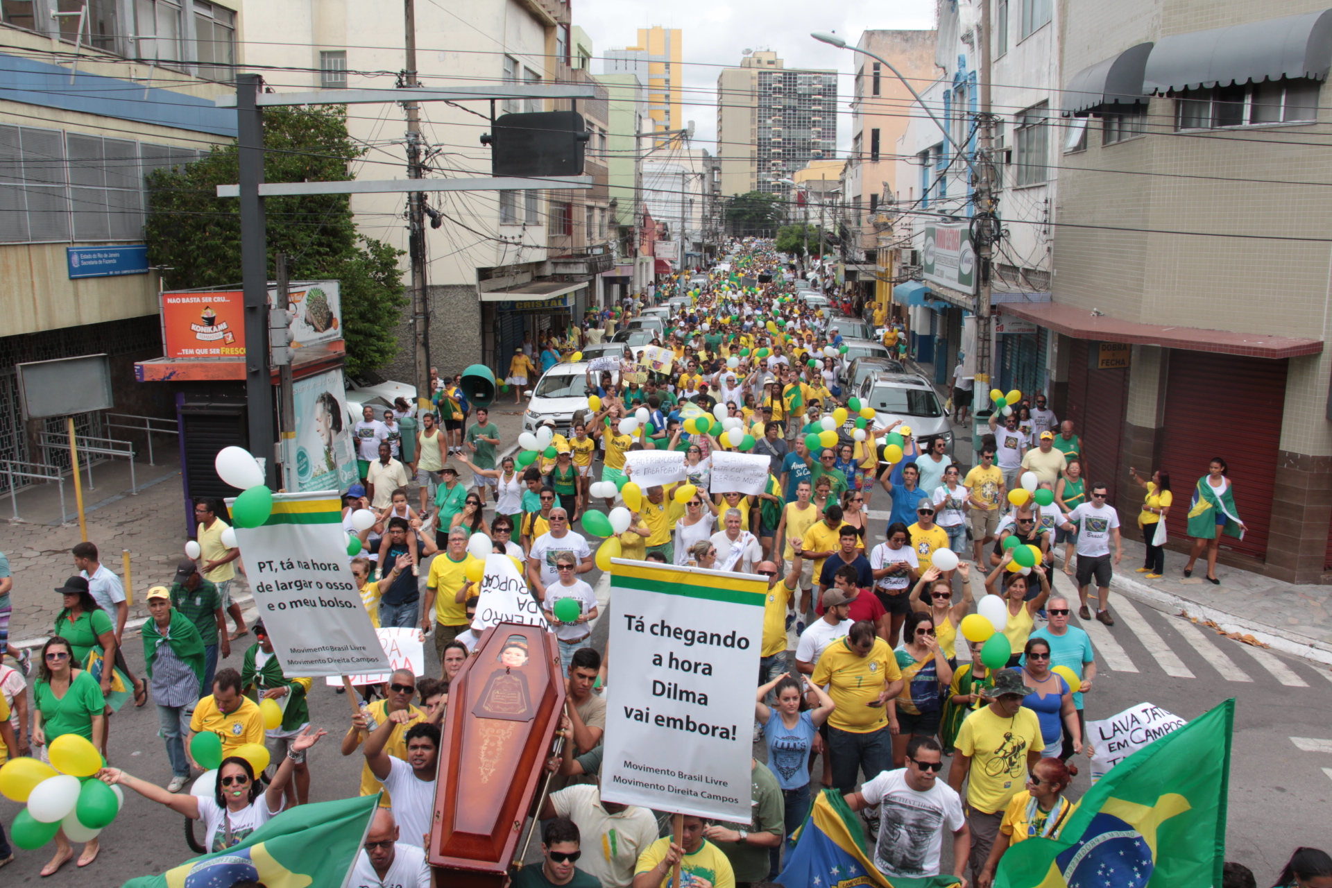 Como nas “Jornadas de Junho”, quando os “Cabruncos Livres” colocaram cerca de 4 mil pessoas nas ruas de Campos, em 20 de junho de 2013, o município também participou, dois anos depois, do movimento pelo impeachment de Dilma. Em 13 de junho de 2015, cerca de 1,5 mil campistas, segundo cálculos da PM, se concentraram na praça São Salvador, de onde saíram em passeata pela av. Alberto Torres à Câmara Municipal. Na região, também foram registradas manifestações, contabilizadas às centenas, em Macaé, Cabo Frio e Itaperuna.