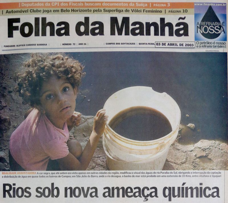 Adulto de 30 anos, fui como jornalista no helicóptero que saiu da planície goitacá rumo a Cataguases, em Minas Gerais, no começo de abril de 2003. Em 29 de março daquele ano, um reservatório de lixívia negra da indústria Cataguases de Papel se rompeu, atingiu o córrego Cágados e, dele, o rio Pomba, outro afluente do Paraíba. A captação d’água em Campos também teve que ser interrompida por 10 dias.