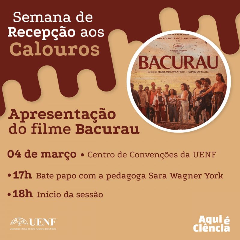 No final da tarde desta quarta (04), no Centro de Convenções da Uenf, será debatido e exibido o filme de ficção “Bacurau” (2019), de Kleber Mendonça Filho e Juliano Dornelles. O evento faz parte Semana de Recepção de Calouros, mas tem entrada franca. É promovido pela assessoria de Cultura da Uenf, comandada pela professora Maria Priscila Pessanha de Castro. E cumpre a promessa de interação entre universidade e comunidade, feita na campanha do ano passado, pelo reitor Raul Palacio. Neste sentido, antes da exibição do filme às 18h, haverá um debate às 17h com a pedagoga Sara Wagner York.