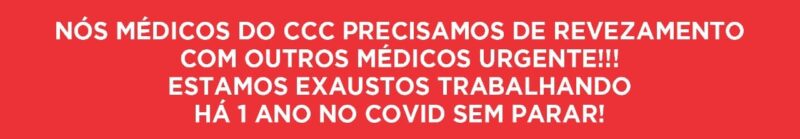 Por isso, às 17h de hoje, não só um bolo marcará o aniversário de um ano do CCC, como uma faixa de protesto será estendida, no pior momento desde que a pandemia começou em Campos: “Nós, médicos do CCC, precisamos de revezamento com outros médicos, urgente! Estamos exaustos, trabalhando há 1 ano sem parar!”.