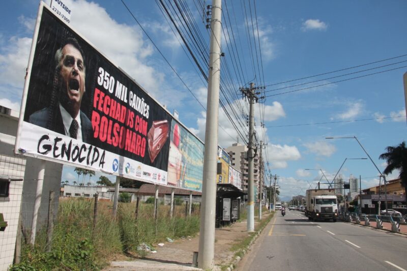 Campanha “350 mil caixões fehcados com Bolsonaro” espalhada em 15 outdoors pelas ruas de Campos (Foto: Genilson Pessanha – Folha da Manhã)