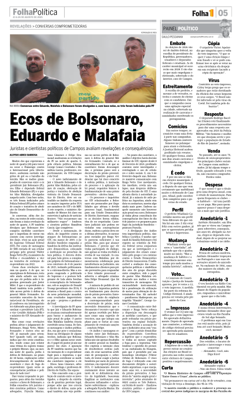 Pare tentar responder às perguntas, para além das torcidas contra e a favor de Bolsonaro, a Folha consultou três juristas e dois cientistas políticos. Como advogados, Pryscila Marins, Sana Gimenes e Felipe Drumond analisaram as revelações da PF na noite de quarta. E, pela ciência política, falaram George Gomes Coutinho e Hamilton Garcia, professores, respectivamente, da UFF-Campos e da Uenf.