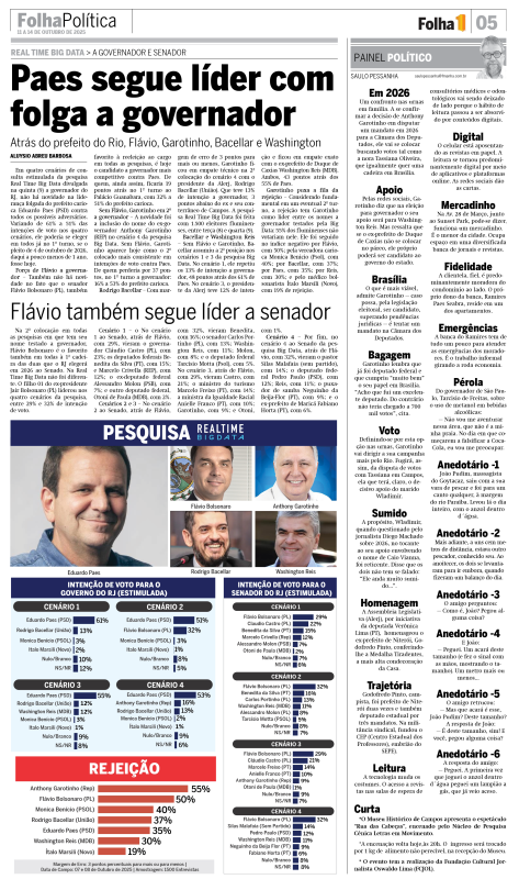 — Rapaz, vi, sim. São as fiandeiras dos gregos. Se a eleição fosse hoje, você ganharia a nossa aposta. Lula abriu outubro, quando as eleições de 2026 passam a ser contadas só em meses, ampliando sua liderança, fora de qualquer margem de erro, nos oito cenários ao 1º turno e nos nove ao 2º turno da Quaest — resumiu a ópera Aníbal, enquanto se sentava à mesa, antes de pedir um copo ao garçom.
