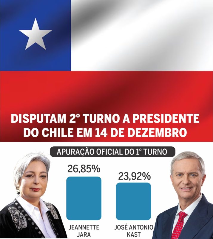 Em 19 de dezembro de 2021, o socialista Gabriel Boric se elegeu presidente do Chile. Em 30 outubro de 2022, Lula se elegeu presidente do Brasil. Até o 1º turno a presidente do Chile no último domingo (16), a esquerda sul-americana celebrava a comunista Jeannette Jara líder nas pesquisas. Mas o conservador José Antonio Kast saiu da urna favorito ao 2º turno de 14 de dezembro.