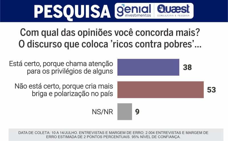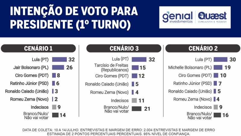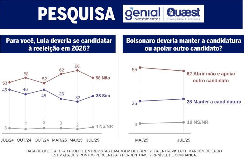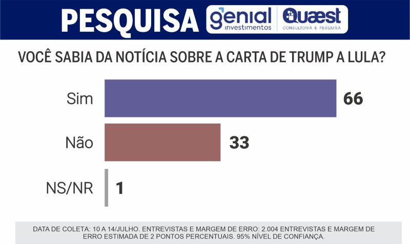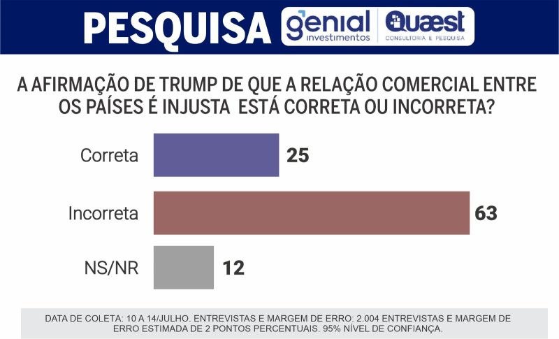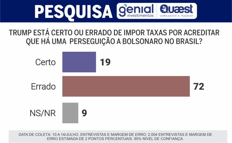 — Exato. Na pesquisa Quaest de maio, Lula estava em empate técnico nas simulações de 2º turno com Bolsonaro, Tarcísio, Michelle, Ratinho Jr. e Eduardo Leite. Depois de Trump, na Quaest de julho, Lula ganharia de todos no 2º turno se a eleição fosse hoje. Só teria empate técnico com Tarcísio. Assim mesmo, no limite da margem de erro.